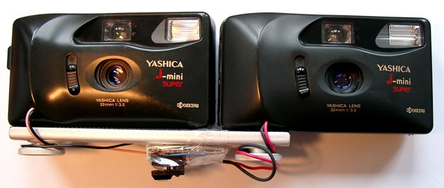 BK media systems uses Yashica cameras because they have the best lenses (home of legendary T4 and Contax). These two are mounted horizontally 11,5 cm (4.5 inches) apart. The distance for best stereo effect on objects is three to ten Meters. I mostly feed Fuji's 100 slide film and the results are outstanding! In 1997 I made a pair of Nikon AF600 / Lite Touch, very compact combo, mounted vertically and stereo range from fifty centimeters to three meters, GREAT! Then I have an old pair of Pentax Super Program for better slide quality and I'm currently experimenting with two Canon EOS 1D MK II for digital photography. The best stereophotos come with wide angles 24mm .. 32mm, but I also get stunning effects with 200..300mm telephoto lenses on occasions.